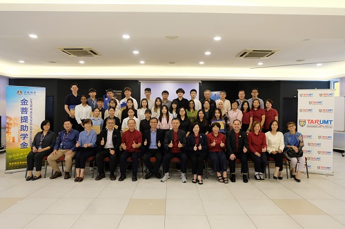 Front row (fifth from left to right) Brother Xu Te, Prof Ir Dr Lee Sze Wei, Teacher Ling Shan, Teacher Fu Han, and officials from TAR UMT and BMCF with the student recipients in the customary group photo after the event.