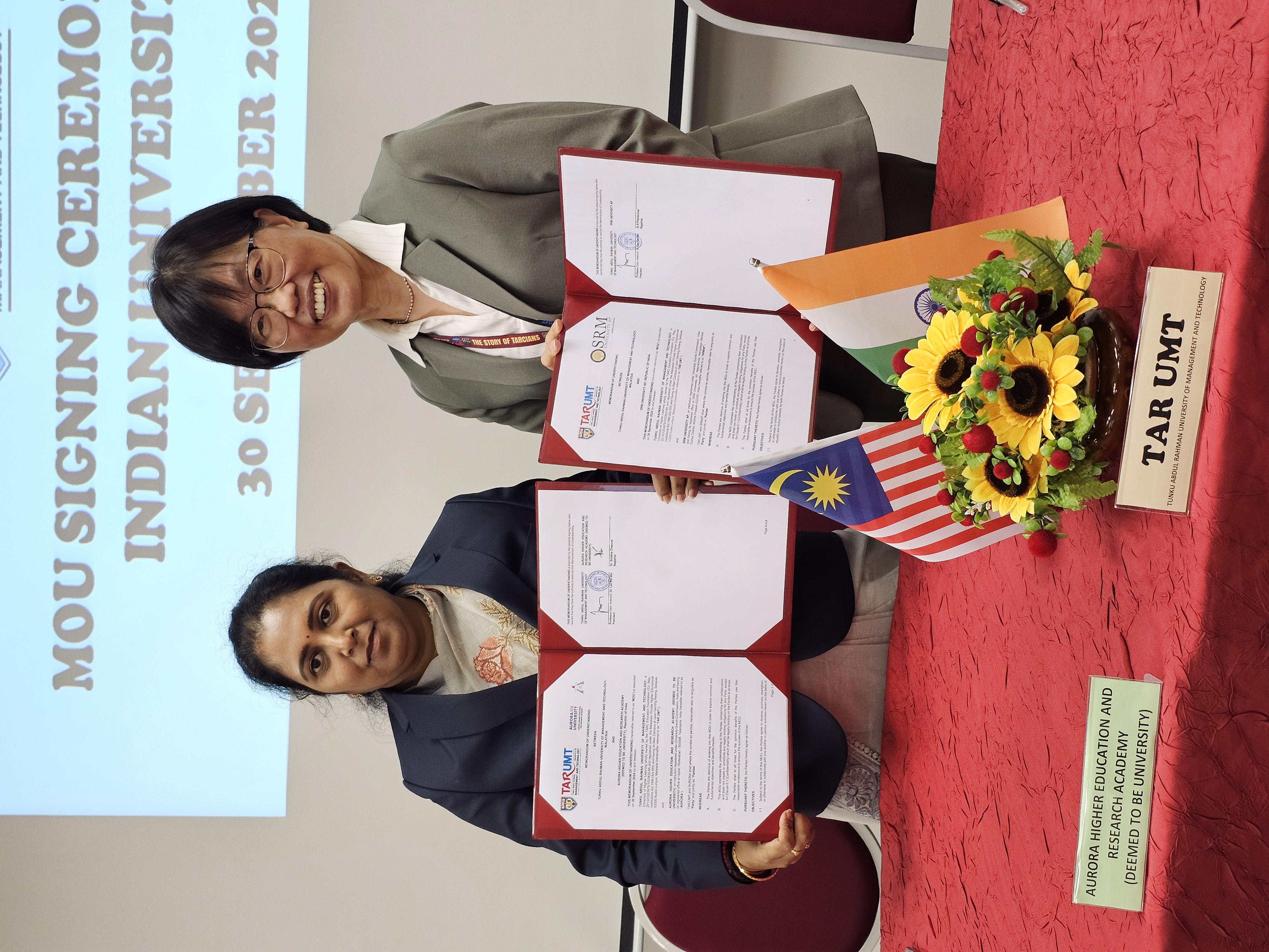 30 September 2024 Senior officials from Aurora Higher Education and Research Academy (Deemed to be University) visited TAR UMT on 30 September 2024 to further explore potential collaboration opportunities. During the visitation, TAR UMT and Aurora Higher Education and Research Academy (Deemed to be University) signed a Memorandum of Understanding. Both institutions were agreed to develop, promote and cooperate with one another in various activities such as: sharing of academic knowledge and best practices; staff and student engagements; and fostering partnerships and long term relationships with one another.