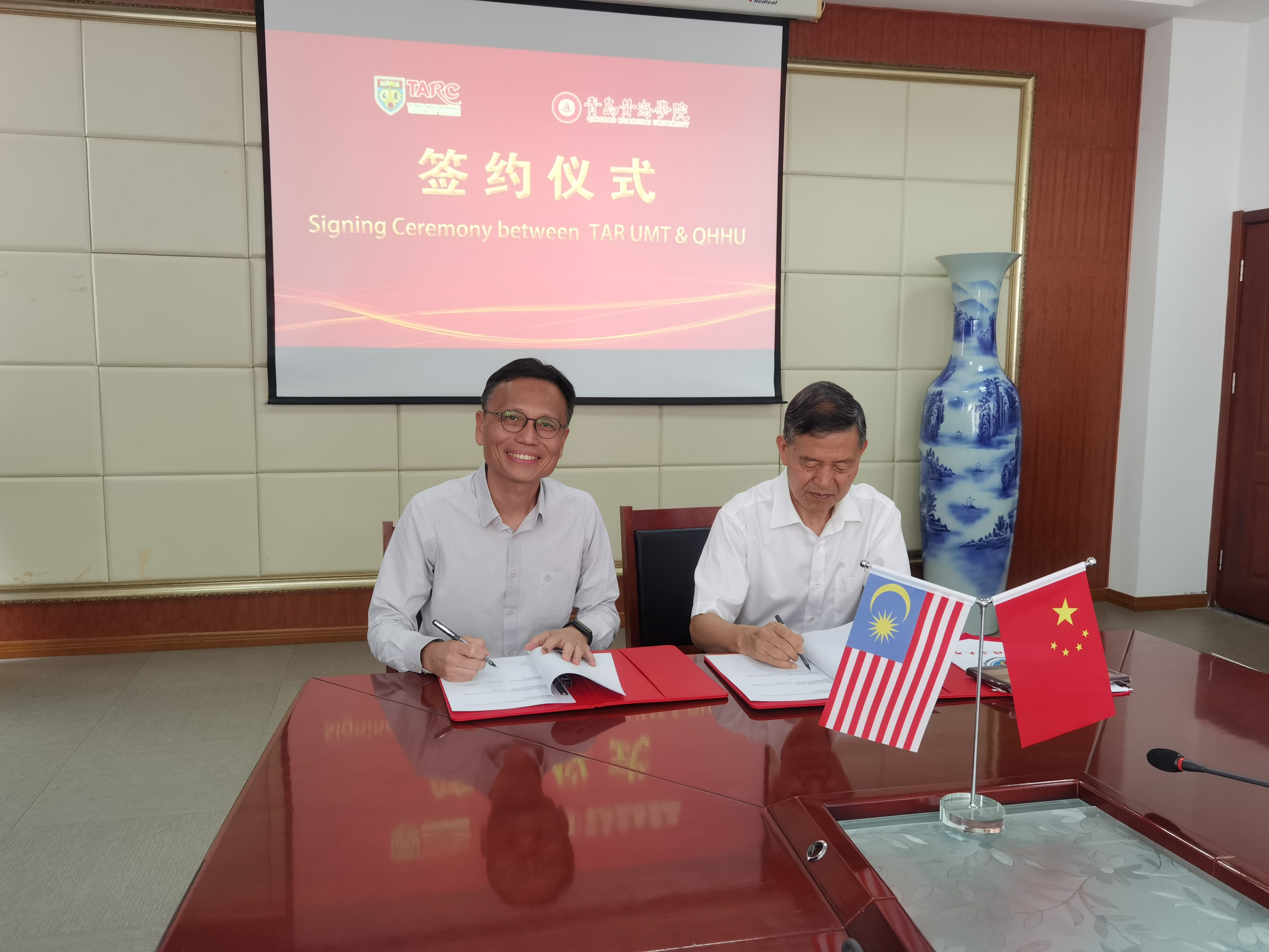 26 August 2023 Senior Officials of TAR UMT visited Qingdao Huanghai University on 26 August 2023 to further explore potential collaboration opportunities. During the visitation, TAR UMT and Qingdao Huanghai University signed a Memorandum of Understanding for Cooperation in Education. Both institutions were agreed to develop, promote and cooperate with one another in various activities such as: sharing of academic knowledge and best practices; staff and student engagements; and fostering partnerships and long term relationships with one another.